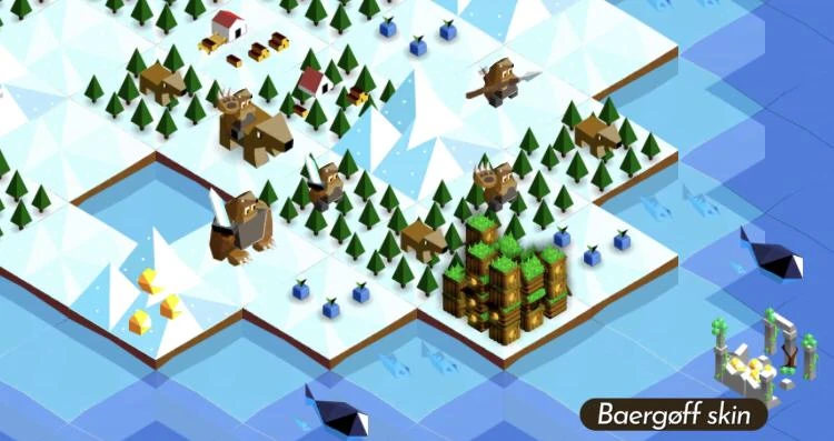 The Baergøff skin was added in the first skin pack for Polytopia. Instead of the horned hat, Baergøff units wear a pelt of the Baerion, the Bardur animal.