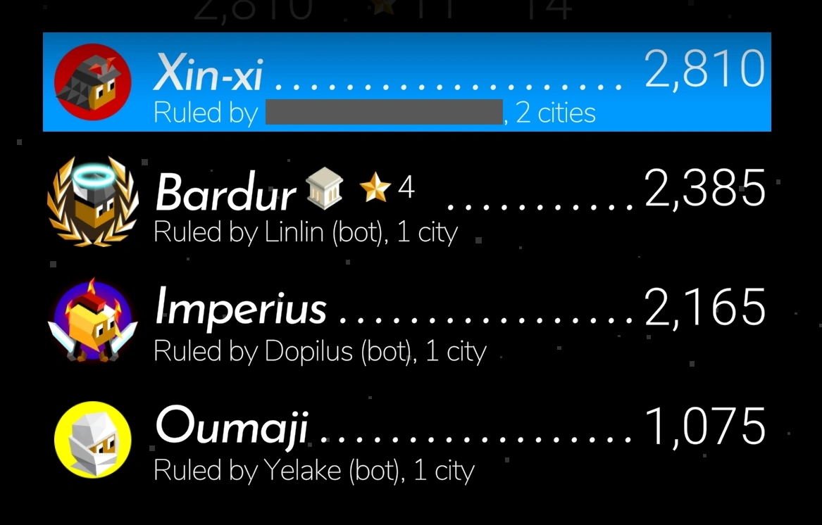 | Dominating | "You are about to win the game" | Occurs if you are one of the last remaining tribes in Domination, and have captured a majority of Capitals. |